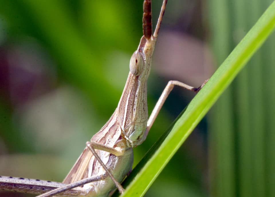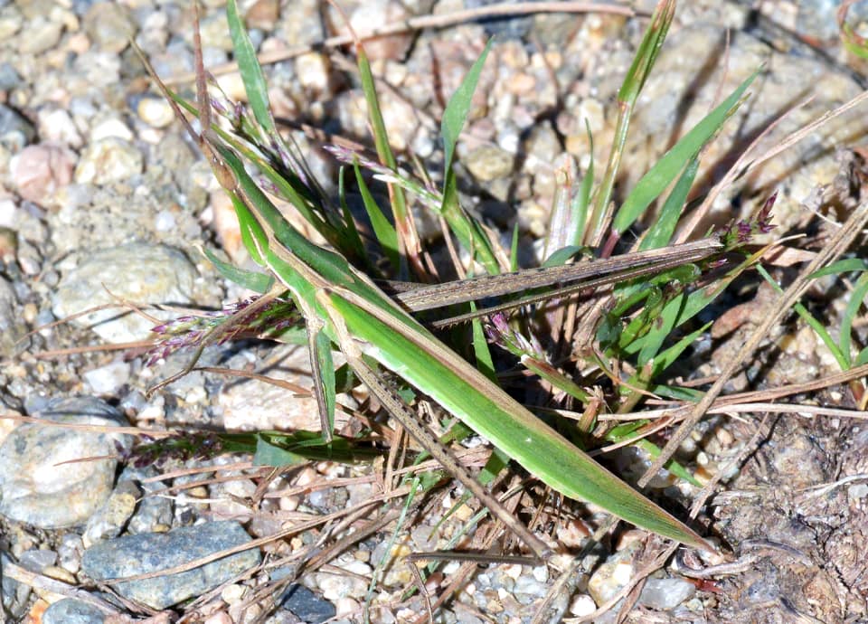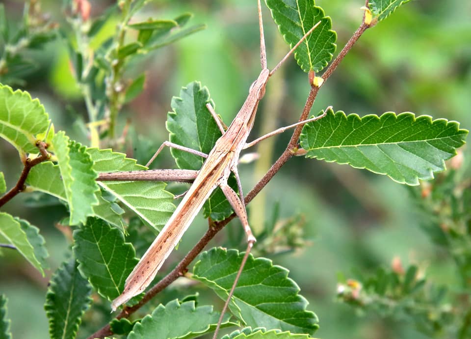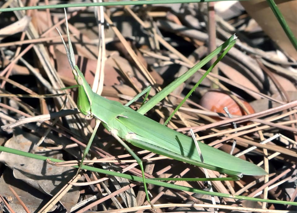 | ショウリョウバッタは、国内に分布しているバッタの中ではもっとも大きいとされている。 大きな脚と尖った頭部が特徴で、本州から南の様々な環境に生息している。 ショウリョウバッタの分布域 ショウリョウバッタは、インドから東南アジア、中国や朝鮮半島、日本や台湾などに分布していて、アフリカやオーストラリアにも分布している。 国内では本州から九州、沖縄地方まで分布していて、近年は北海道でも見られるようになっているとされている。 ただ、北海道については定着しているのかはっきりしない。 ショウリョウバッタの大きさ・特徴 ショウリョウバッタは、雄は体長40~50mm程度、雌は75~80mm程で、体は雌の方がかなり大きい。 大きい雌は体長90mm程に成長するものも見られ、国内に分布しているバッタの中ではもっとも大きいとされている。 体は全体に細長く、頭部は円錐型のようで、先が尖っているのが特徴になっている。 後ろ脚が大きくて長いこともショウリョウバッタの特徴になっていて、触覚は細い紡錘形のようで、頭部の先に付いている。 体色は緑色と褐色のものがあるが、両方が混ざったようなものも見られ、変化が大きい。 ショウリョウバッタの生態・生活 ショウリョウバッタは低地から山地にかけて生息していて、草原や河川沿いの藪などで見られる。 ただ、開けた明るい環境を好み、山地では森林などでは見られず、陽当たりのよい開けた斜面などで見られる。 一方、低地では沿岸の草むらや植物が茂る空き地や造成地などのほか、耕作地周辺や寺社の境内、市街地近郊の公園や住宅地周辺の草むらなど、さまざまな環境で見られる。 日中に活動し、成虫は主に8~10月頃にかけて現れるが、地域によっては7~11月頃にかけて見られるほか、南西諸島では1年を通して見られる。 成虫、幼虫ともにエノコログサやススキ、オヒシバなど、主にイネ科植物の葉などを食べ、しばしばオンブバッタなど一緒に見られる。 草むらや畦道などを歩いていて、飛び出してくるのは大抵が雄で、体の大きな雌は跳ねて逃げることが多い。 また、雄は飛ぶ時に前後の翅を打ち合わせて「チキチキ」というような音を出すことから、「チキチキバッタ」、或いは「キチキチバッタ」と呼ばれることもある。 雌はイネ科植物の多い土の中に卵を産むが、卵は卵鞘と呼ばれるスポンジ状の泡で幾つか包まれて産卵される。 冬は卵で越冬し、翌年の5~6月頃には孵化する。 その後、何度か脱皮し、7月頃には成虫となって活動をはじめる。 ショウリョウバッタについての参考・その他 ショウリョウバッタは、漢字表記では「精霊蝗虫」と書かれるが、これは、旧暦のお盆(精霊会)の前後に羽化し、数多く現れるようになることから名付けられたと言われている。 また、雄は「チキチキバッタ」などと呼ばれることがあるが、雌は「コメツキバッタ」や「ハタオリバッタ」などと呼ばれることがある。 これは、雌を後ろ足をつかんで捕らえたとき、体を大きく縦に振る様子から付けられたとされている。 |