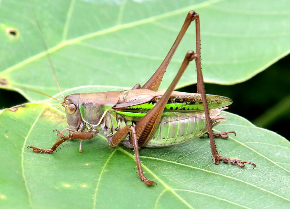 | ヒガシキリギリスは、主に東日本に分布しているキリギリスの仲間で、陽当たりのよい草原や河原などに生息している。 翅の長さが腹部の末端と同じほどなのが特徴で、ふつうは前翅の側面に黒い斑が見られる。 ヒガシキリギリスの分布域 ヒガシキリギリスは、本州の青森から岡山辺りにかけて分布している。 しかし、近畿地方では淡路島にも分布しているが、奈良や京都、大阪の一部などにはニシキリギリスも分布していて、近畿地方ではニシキリギリスを取り巻くように分布していると言われている。 ヒガシキリギリスの大きさ・特徴 ヒガシキリギリスは、翅端までを含めた体長が、雄で25.5~36mm、雌では24.5~37mm程で、全体に緑色をしたものと褐色部が多い、褐色型のものが見られる。 翅の長さは腹部の末端と同じほどなのが特徴で、ふつうは前翅の側面に黒い斑がある。 いずれの脚にも棘が見られるが、前脚のものは特に長く、よく発達している。 また、雌は腹部末端の長い産卵器がよく目立つ。 中国地方や四国、九州などに分布しているニシキリギリスとは大変よく似ているが、一般に、ニシキリギリスの翅は腹部末端よりも長いが、ヒガシキリギリスの翅は腹部末端より短いか、同じ程度とされている。 また、前翅側面に見られる黒斑も、ニシキリギリスでは見られないか、あっても1列程度と言われているほか、ヒガシキリギリスの方が発音器も大きい特徴があるとされている。 ヒガシキリギリスの生態・生活 ヒガシキリギリスは低地から山地にかけて生息していて、陽当たりのよい草原や河原などで多く見られる。 草丈が高い草原を好む傾向があり、河川沿いの茂みなどでも見られる。 成虫は主に7月下旬ころから現れ、10月頃まで見られる。 成虫、幼虫ともに他の昆虫類などを食べるが、前脚にある長い棘は、昆虫をとらえるのに適している。 また、初齢幼虫は小さいこともあり、イネ科植物などの種子や花粉を食べて成長する。 しかし、成長するに従い、チョウの幼虫や他の小さな昆虫類を食べるようになり、時には共食いすることも観察されている。 これは、ヒガシキリギリスが縄張りをもった生活をしているためとも考えられていて、複数の個体が集まっていることは、まず見られない。 体色が植物の色によく似ているので、見つけることが難しく、近づくと、跳んで逃げるよりも、草むらの奥へ逃げ込んでしまうことが多い。 また、成虫はしばしば葉の上から落下して、落葉の下などに潜り込んだりする。 雌は、長い産卵管を土の中に差し込み卵を産み付け、冬は卵で越冬する。 卵は翌年の3~4月頃には孵化するが、2~3年後に孵化する卵もあるとされている。 ヒガシキリギリスについての参考・その他 以前は、青森から鹿児島にかけて分布しているキリギリスを1種として認識していたが、現在は、東日本と西日本に分布するものを別種として、ニシキリギリスとヒガシキリギリスの2種に別けられている。 しかし、近畿地方などでは両種が混在する地域もあり、分布域は複雑になっている。 |