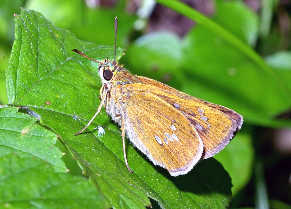 | オオチャバネセセリは国内に広く分布していて、低地から山地まで生息している。 イチモンジセセリとはよく似ているが、後翅に見られる白い斑点はジグザグのように並んでいる。 オオチャバネセセリの分布域 オオチャバネセセリは、国内では北海道から本州、四国、九州まで分布しているが、日本のほか、ロシア極東域から中国大陸、朝鮮半島や台湾などに広く分布している。 オオチャバネセセリの大きさ・特徴 オオチャバネセセリの大きさ(前翅長)は16〜21mm程で、「オオチャバネ」と名付けられているが、チャバネセセリとほとんど同じ大きさをしている。 全体に褐色から黒褐色をしていて、他のセセリチョウのように目は大きく、体にも褐色から黒褐色の毛が密生している。 イチモンジセセリとはよく似ているが、後翅に見られる白い斑点が、イチモンジセセリではほぼ一直線に並んでいるが、オオチャバネセセリではガタガタとしていて前後するように並んでいるのが特徴になっている。 また、チャバネセセリとも似ているが、チャバネセセリの後翅に見られる白い斑は目立たず、オオチャバネセセリのように大きくはない。 オオチャバネセセリの生態・生活 オオチャバネセセリは、低地から丘陵地、山地にかけて生息していて、森林や疎林などの周辺や草地で見られる。 また、河川沿いの雑木林などでも見られ、花や植物が多ければ住宅地の公園などでも見られる。 成虫は主に6〜10月頃にかけて2〜3回現れるが、寒冷地では7〜8月の夏に1回だけ出現するとされている。 敏捷に飛行し、主にアザミやヒメジョオン、オカトラノオ、ウツボグサなどの花に集まるが、獣糞などに集まることもある。 幼虫はメダケやササなどのタケ類を主な食草としているが、ススキなどのイネ類も食草とし、冬は幼虫で越冬する。 オオチャバネセセリについての参考・その他 オオチャバネセセリは全国の低地から山地にかけて普通に見られたが、近年は個体数が減少していて、自治体によっては準絶滅危惧種などに指定されている。 個体数減少の原因は詳しく分かっていないが、森林や雑木林周辺の開発などによる生息環境の変化や減少が原因のひとつとして考えられている。 尚、オオチャバネセセリには次の亜種が認識されている。 Polytremis pellucida pellucida 日本や朝鮮半島、ロシア極東域に分布する基亜種 P. p. quanta 中国・安徽省など P. p. asahinai 台湾に分布 P. p. inexpecta 中国・浙江省など |