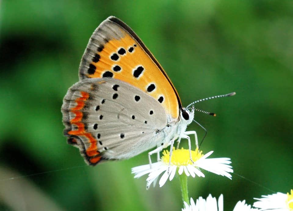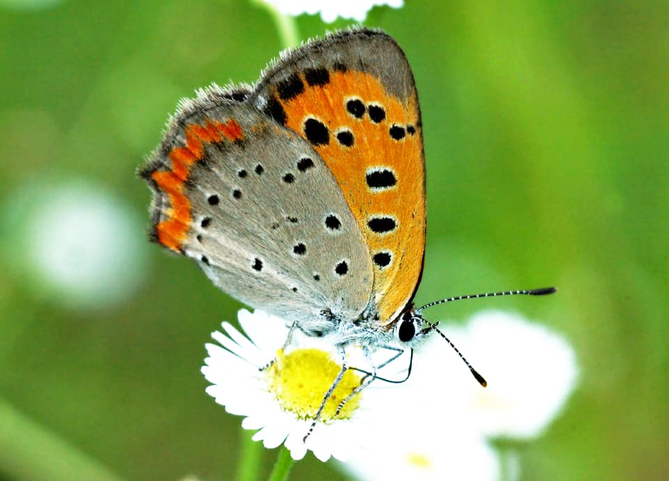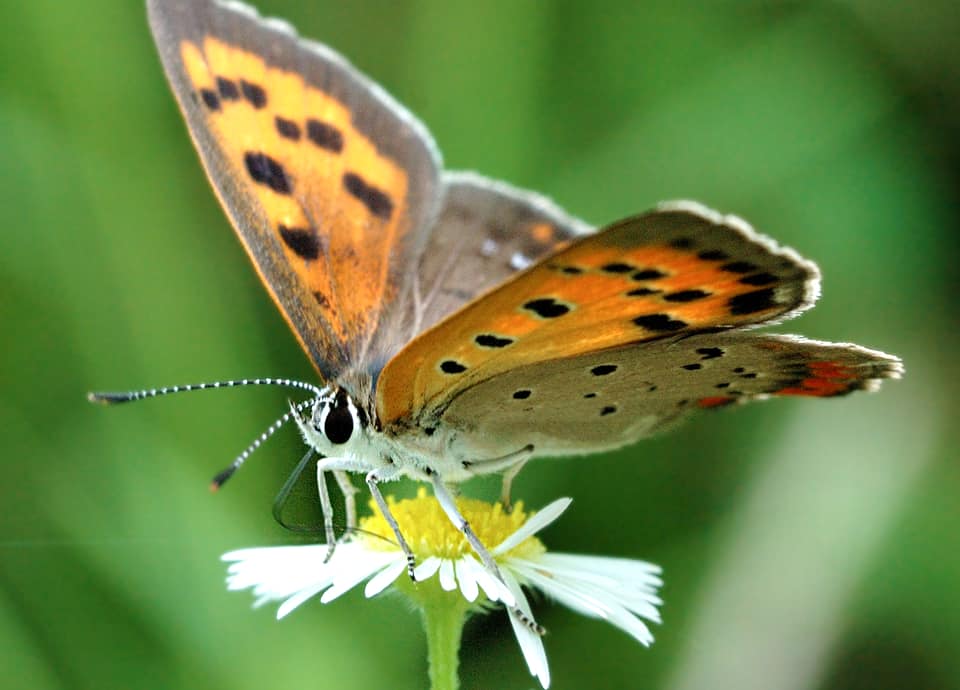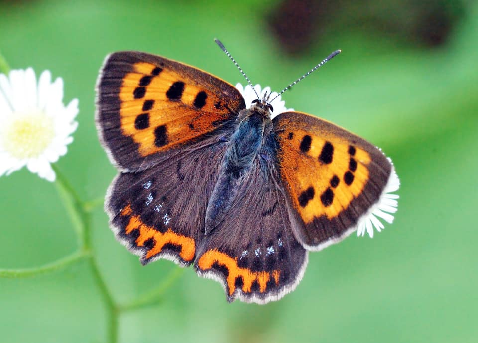 | ベニシジミは国内各地に分布しているシジミチョウで、様々な環境で見られる。 翅裏の色は前翅と後翅で異なっているのが特徴になっているが、後翅の裏の後方には鮮やかなオレンジ色の帯がある。 ベニシジミの分布域 ベニシジミは、ヨーロッパからアジア、北アメリカなどに広く分布していて、アフリカにも分布している。 国内でも、北海道から九州まで広く分布していて、草原や疎林、河原や耕作地などのほか、市街地の公園や空き地、住宅の庭先など、様々な環境に生息している。 ベニシジミの大きさ・特徴 ベニシジミは比較的小型のシジミチョウで、前翅長は15〜18mm程度。 前翅の表は赤みのあるオレンジ色をしているが、黒褐色の斑が散在していて、縁は暗褐色で縁取られている。 また、後翅の表は大部分が暗褐色で、後ろ縁には赤みのあるオレンジ色の帯模様が見られ、ベニシジミの特徴になっている。 翅裏の色はそれぞれが違っていて、前翅の裏は表と同じような色をしていて黒い斑があるが、縁の部分は表より明るい色になっている。 後翅では、表の暗褐色の部分が灰色になっているが、後ろ縁には鮮やかなオレンジ色の帯模様があり、ベニシジミは特徴のある翅の様子をしている。 また、夏に現れるものは地色が濃くなり、黒い斑も不明瞭になるが、秋には再び春型に近い色になる。 ベニシジミの生態・生活 ベニシジミは、主に草原や耕作地周辺などに生息しているが、河原や寺社林などでもふつうに見られる。 明るく開けた環境を好むが、花や幼虫の食草などがあれば、市街地の公園や空き地、住宅の庭先などでも見られる。 成虫は3〜10月頃の春から秋にかけて見られ、1年に数回出現するが、寒冷地では少なくなる。 しかし、地域によっては12月頃でも見ることができ、観察期間も長い。 成虫はタンポポやシロツメクサ、ハルジオンやヒメジョオン、セイタカアワダチソウなど、様々な花の蜜を吸い、ヤマトシジミなどと一緒に見られることも多い。 比較的地面の近くを素早く飛ぶが、すぐに草の上などにとまるので観察はしやすい。 また、ベニシジミの雄は小さな縄張りをもち、他の雄や、時には他の昆虫類を追い払うようなこともする。 卵はスイバやギシギシなどのタデ科植物にひとつずつ産みつけられ、幼虫はそれらを食草としている。 幼虫はずんぐりとした楕円形で、緑から紫色のような色をしているが、赤い縦筋があるものとないものが見られる。 秋に孵化した幼虫の多くが冬を越し、翌年の春には蛹になって成虫となる。 ベニシジミについてのその他・参考 ベニシジミはユーラシアや北アメリカのほか、北アフリカやエチオピア、ウガンダやケニア、タンザニアやマラウイなどのアフリカにも分布していて、多くの亜種が知られている。 この内、国内で見られるものは亜種・L. p. daimioで、基亜種・L. p. phlaeas は、ヨーロッパからロシア西部、コーカサス地方などに分布している。 |