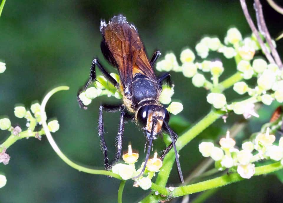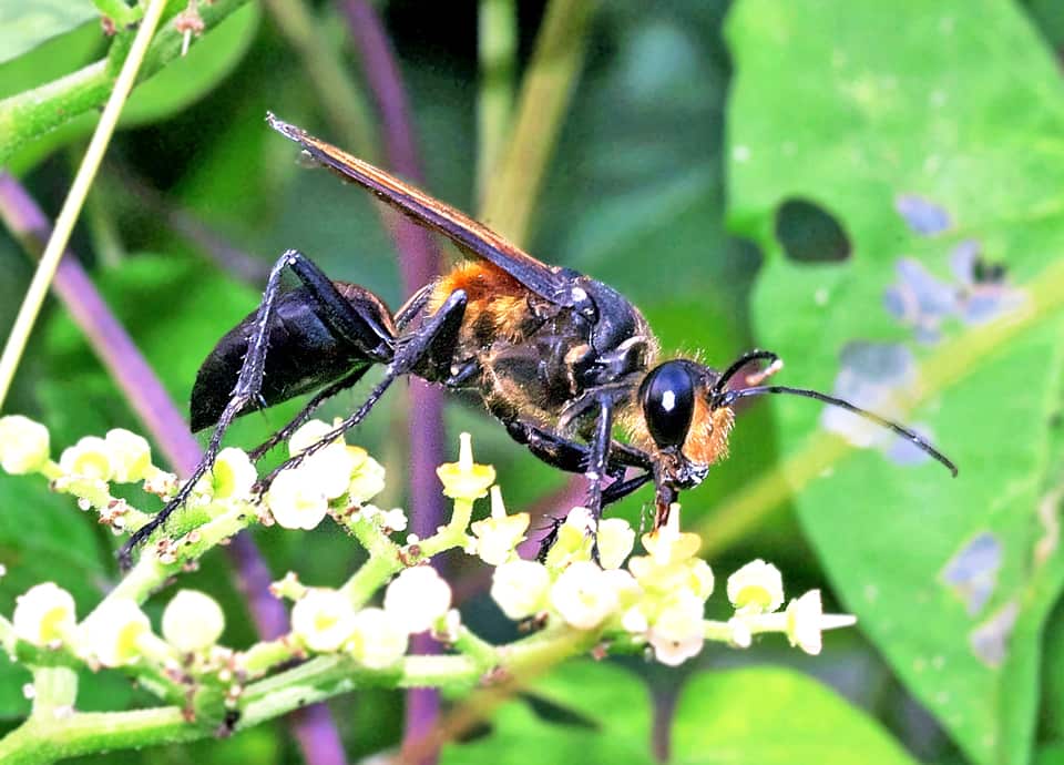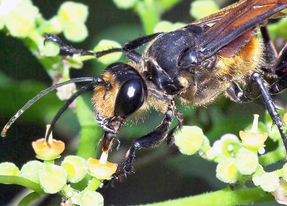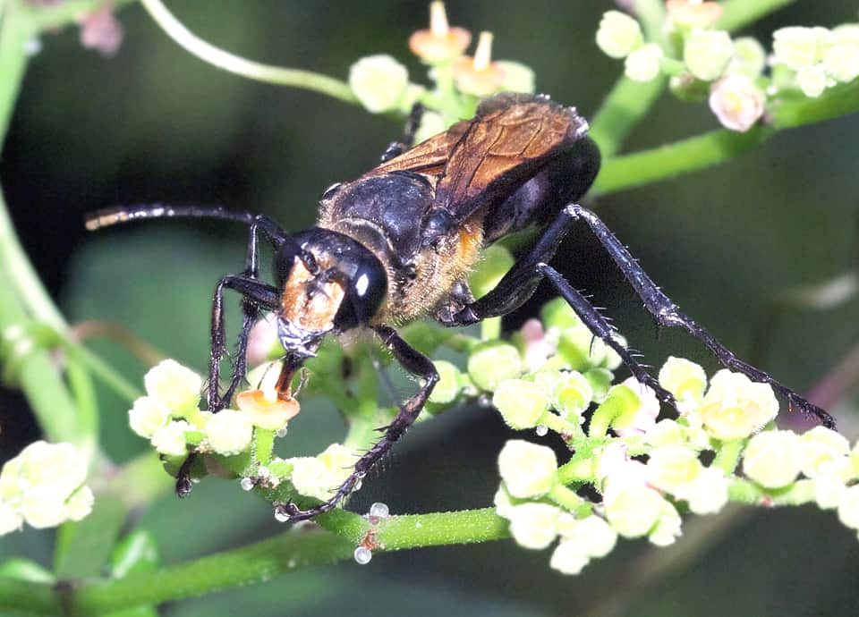 | 食べ物 | 成虫は花の蜜、幼虫は巣に運び入れられキリギリス類など |