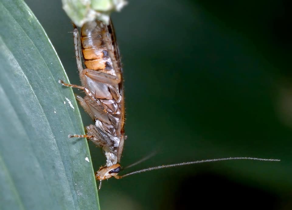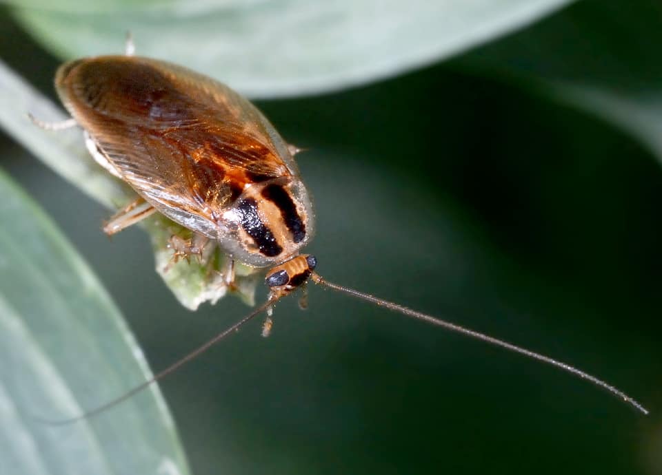 | モリチャバネゴキブリは本州から南に分布していて、様々な環境に適応している。 「モリ」と名前についているが、森林だけでなく、都市部の公園にも生息している。 モリチャバネゴキブリの分布域 モリチャバネゴキブリは本州から九州にかけて分布していて、韓国の一部(済州島)にも分布している。 伊豆諸島や対馬、種子島、奄美大島などでも見られるが、本州では主に関東地方辺りから南に分布している。 モリチャバネゴキブリの大きさ・特徴 モリチャバネゴキブリは体長11〜13mm程で、体は細長く、全体に茶褐色か黄褐色のような色をしている。 脚は淡い色をしているが、前胸の背側に太くて黒い筋が2本あるのが特徴になっている。 チャバネゴキブリとは大変よく似ているが、チャバネゴキブリの胸の黒い筋は平行になっているが、モリチャバネゴキブリの黒い筋は後方で内側に広がっていて、両筋が繋がりそうになっているなどの違いがある。 モリチャバネゴキブリの生態・生活 モリチャバネゴキブリは低地から低山地にかけて生息していて、森林や疎林、草地などのほか、さまざまな環境で見られる。 海岸近くの松林や耕作地、造成地やゴミ捨て場などにも生息していて、「モリ」と名前についているが、都市部でも見られ、市街地の公園などにも生息している。 成虫は主に5〜11月頃にかけて見られ、林床などの地上で見られることが多い。 落ち葉や枯れ草、朽ち木などの中にいることが多く、成虫・幼虫ともにそれらの植物質のものを食べるが、雑食性で生き物の死骸なども食べる。 主として夜間に活動するが、日中も活動し、葉の上や花についていることもあり、樹液を吸っていることもある。 また、チャバネゴキブリは飛ぶことができないが、モリチャバネゴキブリは飛ぶことができる。 ただ、大抵は地上近くを飛び、高いところを飛びまわるということはない。 卵は卵鞘のなかに数十の卵が入っているが、モリチャバネゴキブリの雌は、卵が孵化するまでは卵鞘を体に残したままにしている。 冬は幼虫で越冬し、翌年の5月頃には羽化して成虫として現れる。 モリチャバネゴキブリについてのその他・参考 モリチャバネゴキブリは人家周辺にも生息しているが、チャバネゴキブリのように屋内に浸入してくることはほとんどない。 時に屋内で見られることもあるが、定着して繁殖することはないと言われている。 また、四国・九州の南部や伊豆諸島、南西諸島などには別種のヒメチャバネゴキブリが分布しているが、胸の背側にある2本の黒い筋は細く、後方でも平行になっている。 |