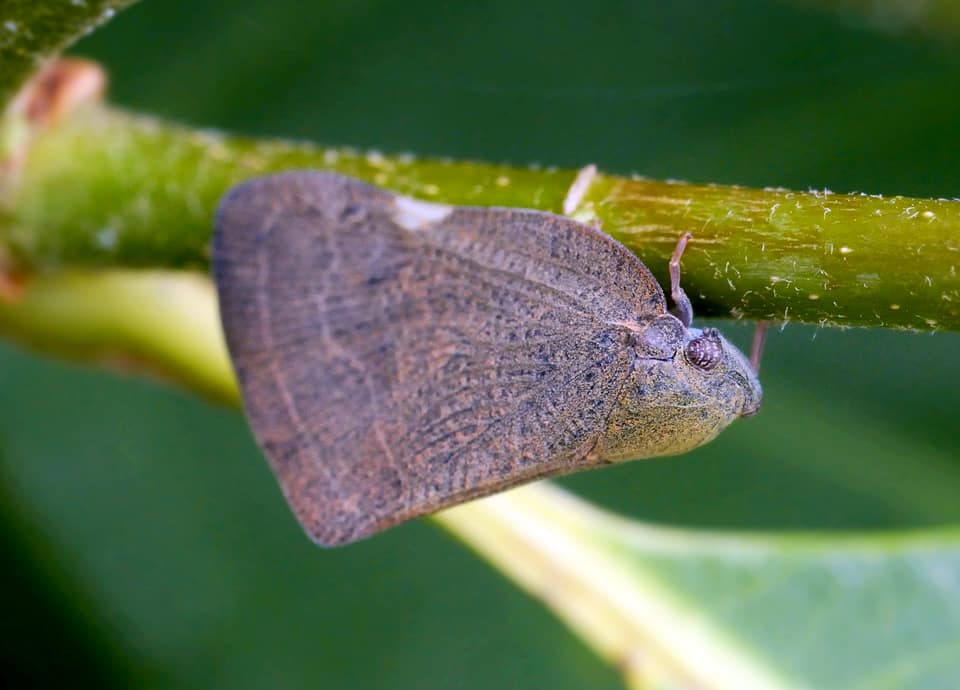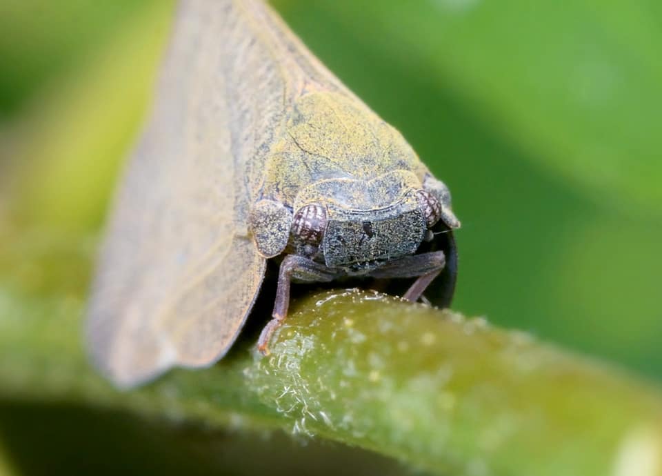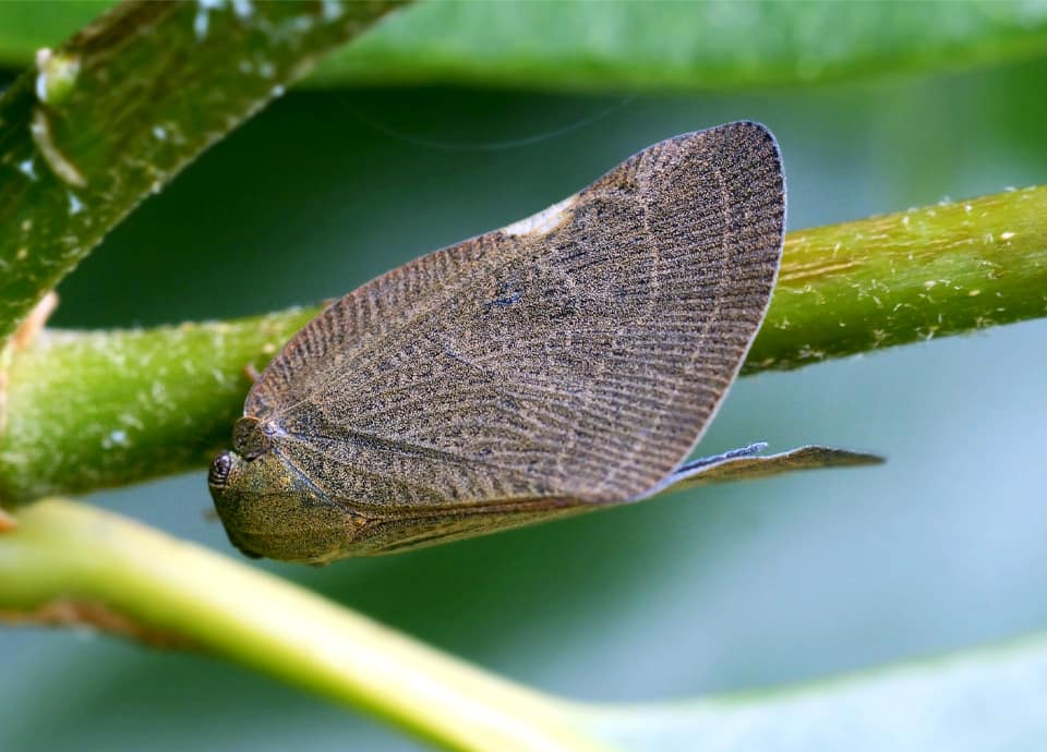 | チュウゴクアミガサハゴロモは中国に分布しているハゴロモ科のカメムシで、翅の前縁には小さな白い斑が見られる。 国内にも本州、四国、九州に移入定着していて、要注意種とされている。 チュウゴクアミガサハゴロモの分布域 チュウゴクアミガサハゴロモは中国が原産とされているが、近年は国内でも見られるようになり、本州や四国、九州で観察されている。 また、韓国やトルコにも移入定着しているほか、フランスやドイツ、イタリアなどのヨーロッパ地域でも移入が確認されている。 チュウゴクアミガサハゴロモの大きさ・特徴 チュウゴクアミガサハゴロモは体長14~16mm程で、在来種のアミガサハゴロモと同じほどが僅かに大きい。 全体にやや赤みのある淡褐色や鉄さび色のような色で、翅には多数の縞が見られる。 翅の前縁に白い三角形の斑があるのが特徴になっていて、複眼はマダラ模様のように見える。 一見するとガの仲間のように見えるが、翅には鱗粉がない。 アミガサハゴロモとはよく似ているが、翅の形や色が違っているほか、翅に見られる白い斑は、チュウゴクアミガサハゴロモでは三角形のようになっているが、アミガサハゴロモは円形や四角形のようになっている。 チュウゴクアミガサハゴロモの生態・生活 チュウゴクアミガサハゴロモは、2017~18年頃から国内で見られるようになり、現在は外来種として定着している。 疎林や河川沿いの雑木林、耕作地周辺などで見られるが、詳しい生態などは分かっていない。 国内では8~9月頃が成虫が現れるピークで、遅ければ10月頃まで見られると言われている。 草木などにとまっているときには、名前のように、編み笠のように翅を閉じて休んでいるが、広食性の昆虫とされている。 カバノキ科やクワ科、ブナ科やマメ科などのほか、ツバキ科やバラ科、ツツジ科など、実に様々な植物に集まり、成虫、幼虫共に葉汁などを吸う。 卵も様々な低木などに産み付けられ、冬は卵で越冬すると言われている。 幼虫は白色で、腹部からロウ物質の白い糸状の毛の束を広げたりする。 チュウゴクアミガサハゴロモについての参考・その他 チュウゴクアミガサハゴロモは、国内での分布域を広げていると言われているが、産卵痕には毛状の白いロウ物質が残り、植物の成長を妨げる原因となることもある。 茶やナシ、カンキツ類、カキなどの栽培植物や庭木にも害を与えることが確認されていて、要注意種とされている。 |