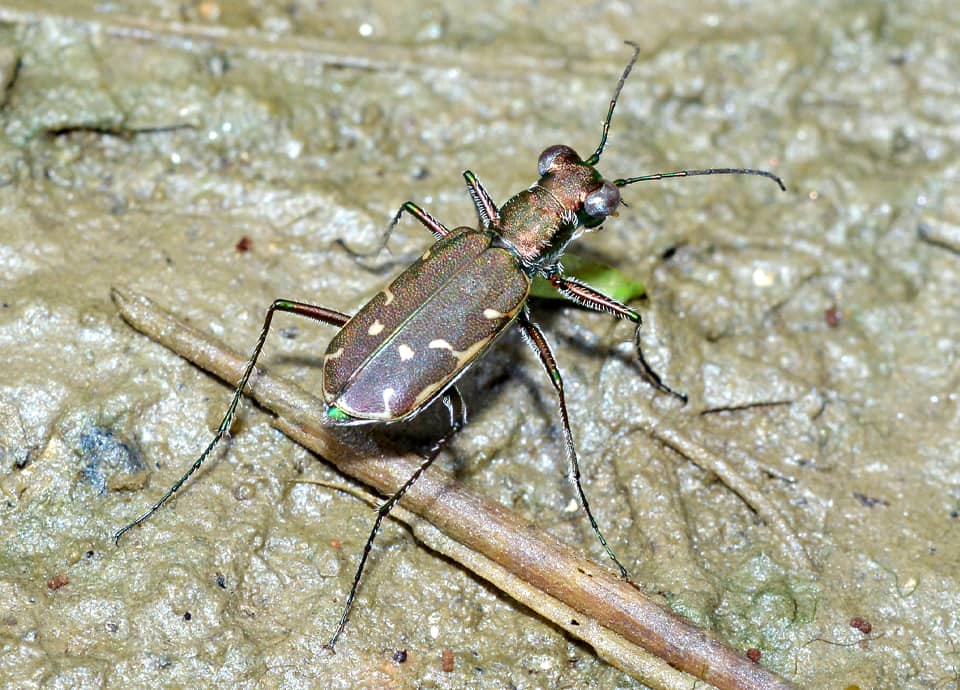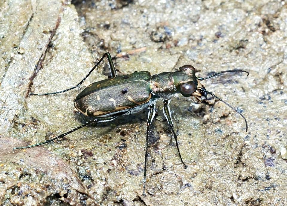 | コハンミョウはオサムシ科の昆虫で、国内に広く分布している。 地表性の昆虫で、成虫・幼虫ともに昆虫類をとらえる。 コハンミョウの分布域 コハンミョウは北海道から九州、沖縄地方まで広く分布していて、国外では中国や朝鮮半島、台湾などのほか、インドシナ半島にも分布している。 コハンミョウの大きさ・特徴 コハンミョウは体長11~13mm程で、名前の様に、ハンミョウよりは小さい。 全体に暗い銅色のような色合いをしているが、光沢があるので、光の具合によっては褐色や緑色を帯びたようにも見える。 上翅に白っぽい小さな斑と細い帯があるのが特徴で、複眼は大きく、顎も大きくてよく目立つ。 また、体には白い毛が多く、脚の毛も大顎と同様によく目立つ。 コハンミョウの生態・生活 コハンミョウは低地から山地にかけて生息していて、林道や耕作地周辺、農道や河川沿いの地道などで見られる。 比較的植生の少ない開けた環境に多く、寺社の境内や市街地近郊の公園でも観察されるほか、海岸域でも見られる。 成虫は5~10月頃にかけて現れ、ハンミョウと同様、成虫・幼虫ともに昆虫類などを食べる。 幼虫も地面に縦穴を掘って生活していて、近くに寄ってくる昆虫類を素早くとらえる。 また、近づくと少しの距離を走ったり飛んだりして逃げるが、追いかけると、再び少しの距離をあけるようにして逃げるのもハンミョウと同じで、「ミチオシエ(道教え)」とも呼ばれる。 雌は土の中に産卵するが、粘土質のような土壌を好む傾向があると言われていて、冬は成虫や幼虫で越冬する。 コハンミョウについての参考・その他 近年、ハンミョウの生息地は減少していると言われているが、コハンミョウの生息地も同様で、生息数も減少傾向にあると言われている。 主な原因は河川の改修や農地の開発などで、自治体によっては準絶滅危惧種や要保護生物などに指定している。 |
