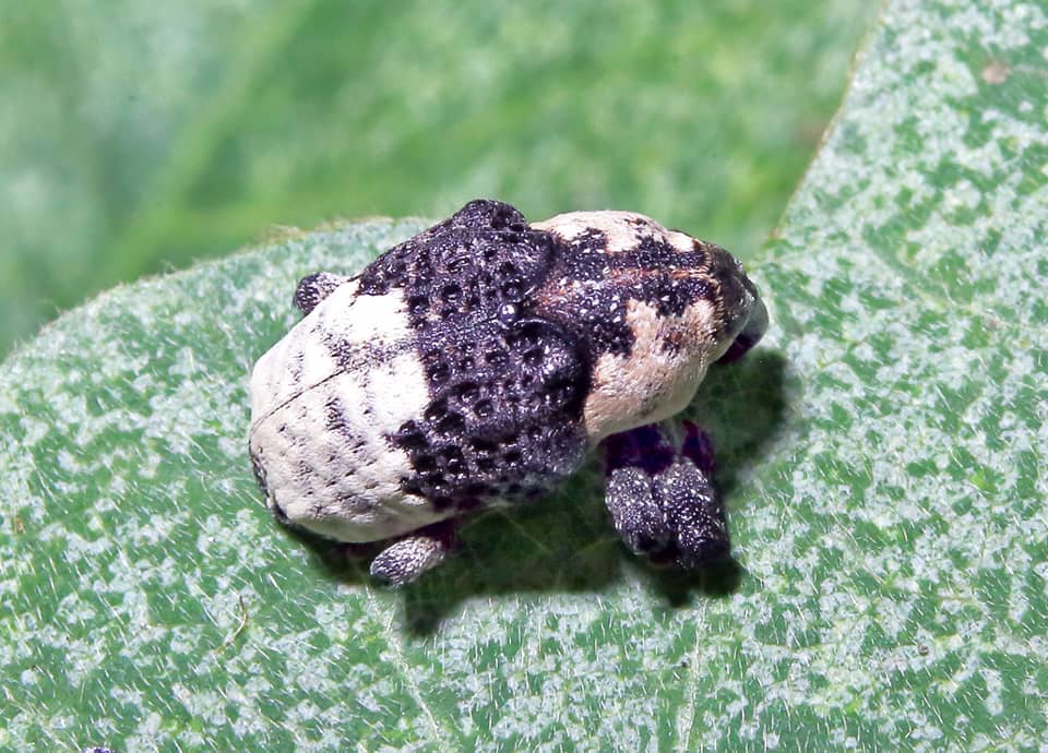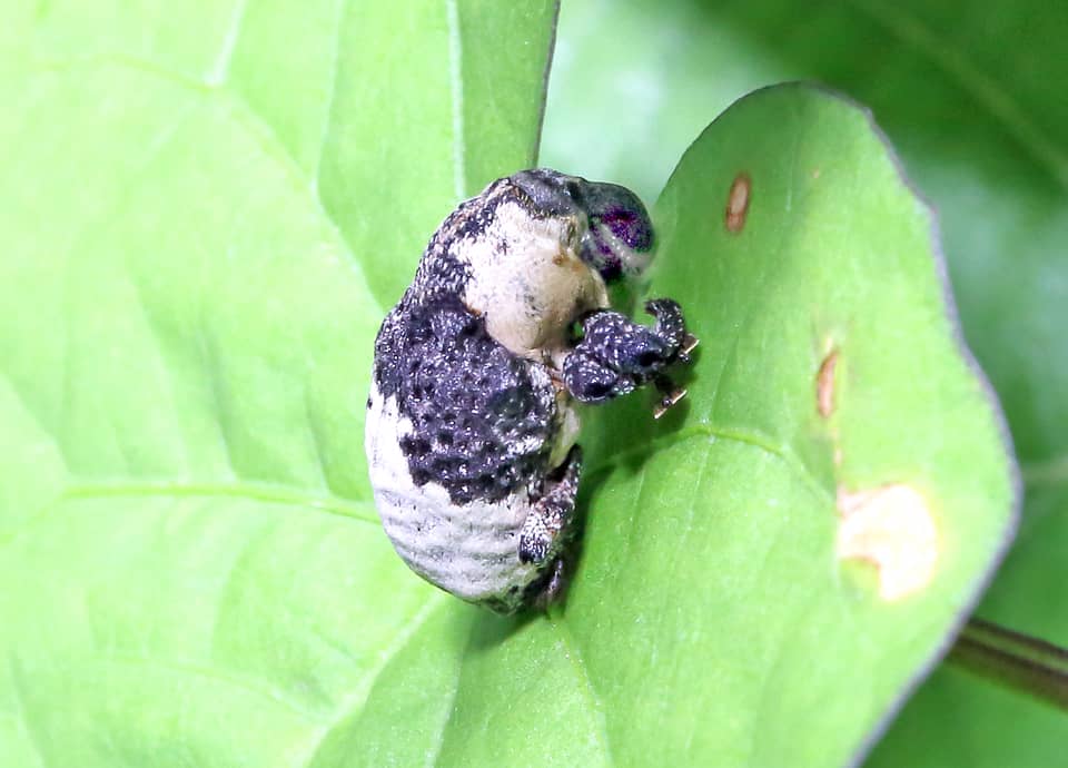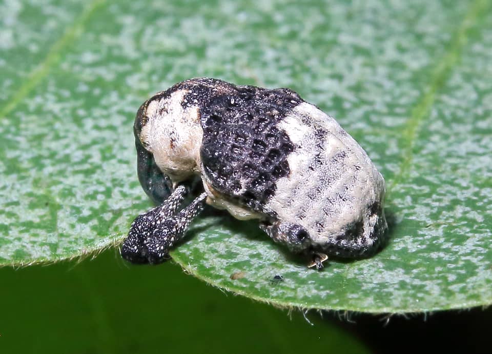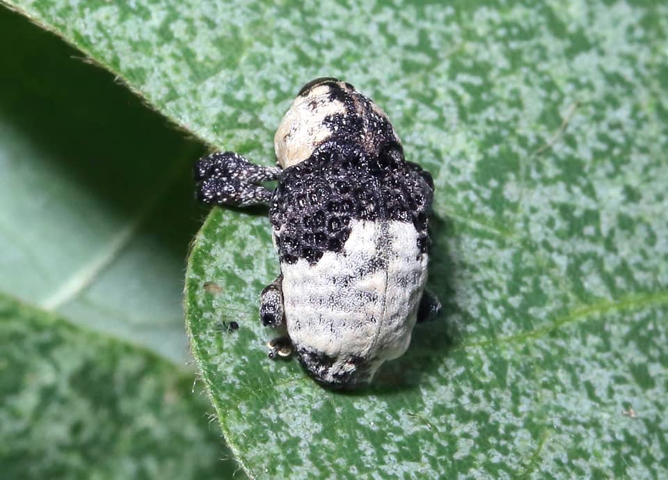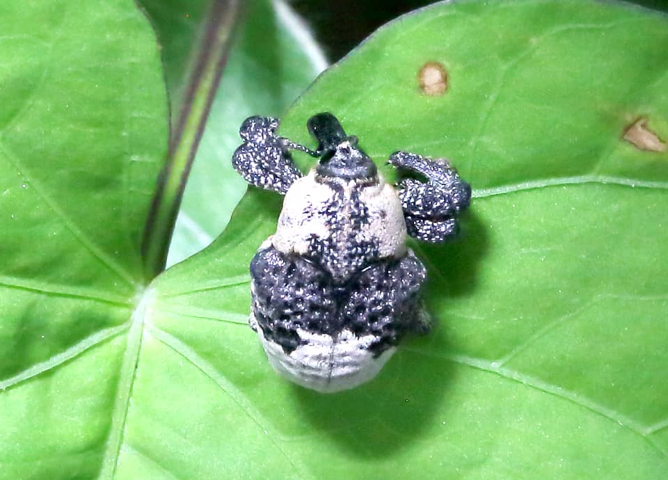 | オジロアシナガゾウムシはよく見られるゾウムシの仲間で、白と黒にはっきりと別れた体色をしている。 クズ類を好むことから、道端でもよく見られ、市街地近郊の公園でも見ることができる。 オジロアシナガゾウムシの分布域 オジロアシナガゾウムシは中国や日本、台湾などに分布していて、国内では本州から四国、九州地方に分布している。 オジロアシナガゾウムシの大きさ・特徴 オジロアシナガゾウムシは、白と黒にはっきりと別れた体色が特徴で、全長は9~10mm程度。 全体にゴツゴツした体つきで、特に上翅の黒い部分は凹凸がよく目立つ。 また、白っぽい部分には、 鱗毛と呼ばれる細かい毛が密生している。 上翅の後ろ半分ほどにも鱗毛が見られるが、この部分が白っぽいことから「オジロ」の名前が付けられている。 一方、脚は太く、黒くて小さな白い斑が散在しているが、「アシナガ」と呼ばれるほどには長くない。 オジロアシナガゾウムシの生態・生活 オジロアシナガゾウムシは、低地から山地まで生息していて、疎林やその周辺、草原などで多く見られる。 比較的開けた草地などを好むようで、耕作地周辺や空き地の草地などのほか、河川沿いの茂みや公園などで見られることもある。 成虫は主に4~8月頃にかけて現れるが、地域などによっては10月でも見られる。 成虫・幼虫ともにクズを好み、成虫は葉、幼虫は茎の組織などを食べる。 オジロアシナガゾウムシは、クズの葉の上などでよく見られるが、危険を感じると脚をたたむようにして葉の縁なとをつかみ、じっとしている。 更に近づいたり捕えようとすると、飛んで逃げることもあるが、大抵は葉の上から落下し、擬死したように動かなくなる。 卵はクズの茎内に産み付けられ、孵化した幼虫は茎の組織を食べて成長する。 冬は成虫で過ごし、茎や蔓にしがみついて、越冬する。 オジロアシナガゾウムシについての参考・その他 オジロアシナガゾウムシは白と黒にはっきりと別れた体色をしているが、これは鳥の糞に擬態していると考えられている。 また、体は非常に硬いが、これも身を守る役目を果たしている。 |