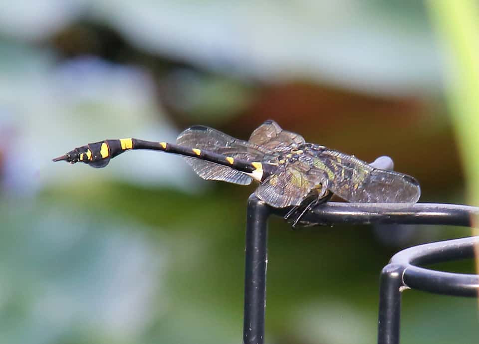 | タイワンウチワヤンマは大型のトンボで、国内では本州から南に分布している。 腹部後方には下方に広がる突起が見られ、ウチワヤンマとはよく似ている。 タイワンウチワヤンマの分布域 タイワンウチワヤンマは、台湾や中国、日本のほか、ベトナムやラオス、ミャンマーなどのインドシナ半島にも分布している。 国内では四国や九州、南西諸島に多いが、本州にも分布していて、沼池や沼、湖やため池などに生息している。 タイワンウチワヤンマの大きさ・特徴 タイワンウチワヤンマは全長70~80mm程の大型のトンボで、胸から腹まではっきりとした黒と黄色になっていて、離れていてもよく目立つ。 雌雄ともにほぼ同じ色をしていて、脚は黒い。 一見するとオニヤンマに似ているが、ウチワヤンマの腹部後方(第8節)には、下方に広がる突起が見られ、これが特徴になっている。 しかし、同様の突起がある近縁のウチワヤンマとは大変よく似ている。 タイワンウチワヤンマでは、この突起が全体に黒いが、ウチワヤンマでは、突起の周りが黒く、黄色の斑を取り囲むようになっていて、突起もやや大きい。 また、脚はタイワンウチワヤンマでは全体が黒くなっているが、ウチワヤンマでは、脚にも黄色い部分が見られるなどの違いがある。